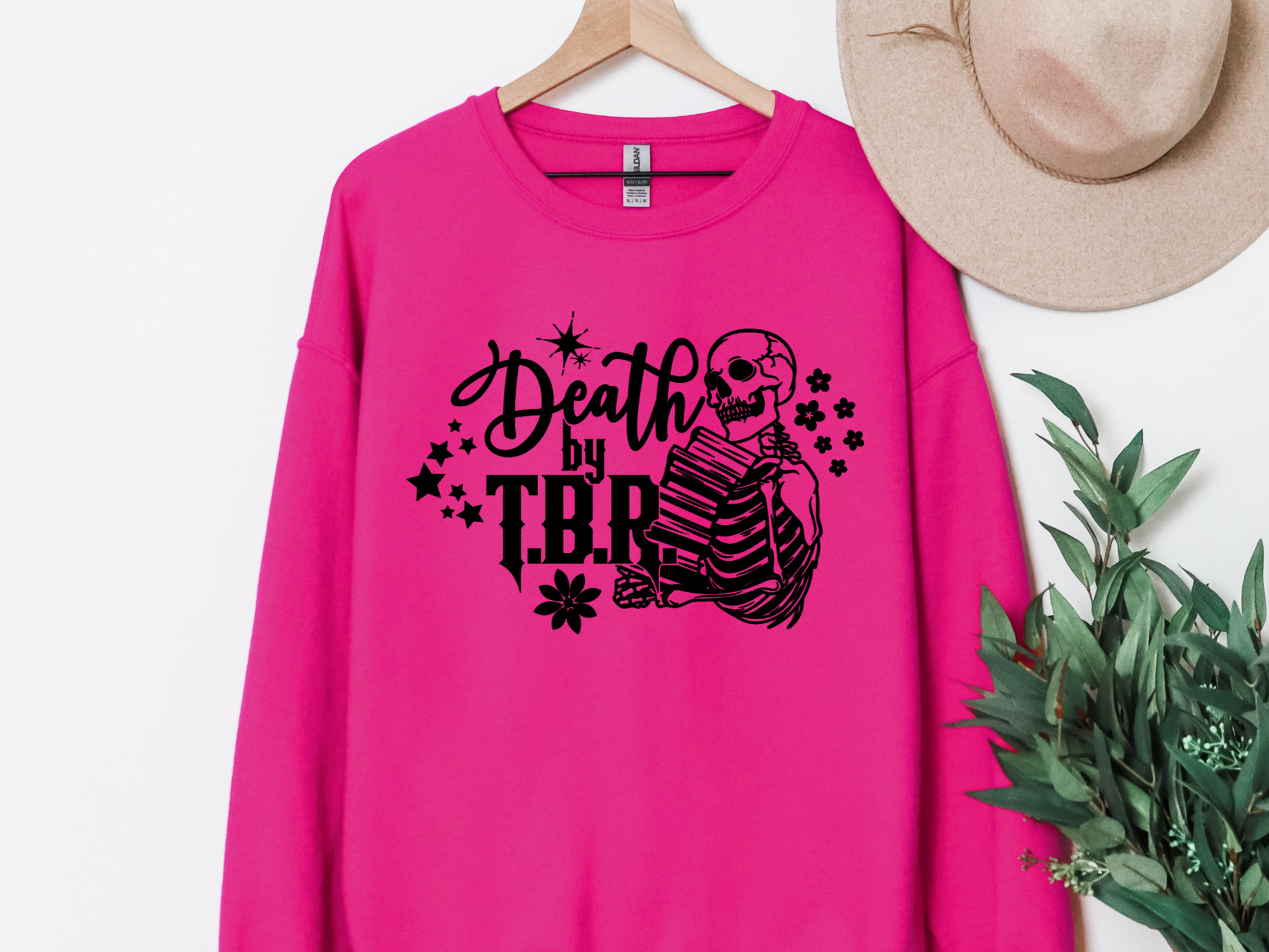 Death By TBR crewneck for the chronically overcommitted reader. You may waste away beneath your towering stack of unread books and the crushing knowledge that there will always be more books to add to the list and not enough time to read them all - but at least you'll look cute doing it. Fleece lined and so cozy, you're going to love this sweater whether you're shopping for new books or reading the ones you already have.